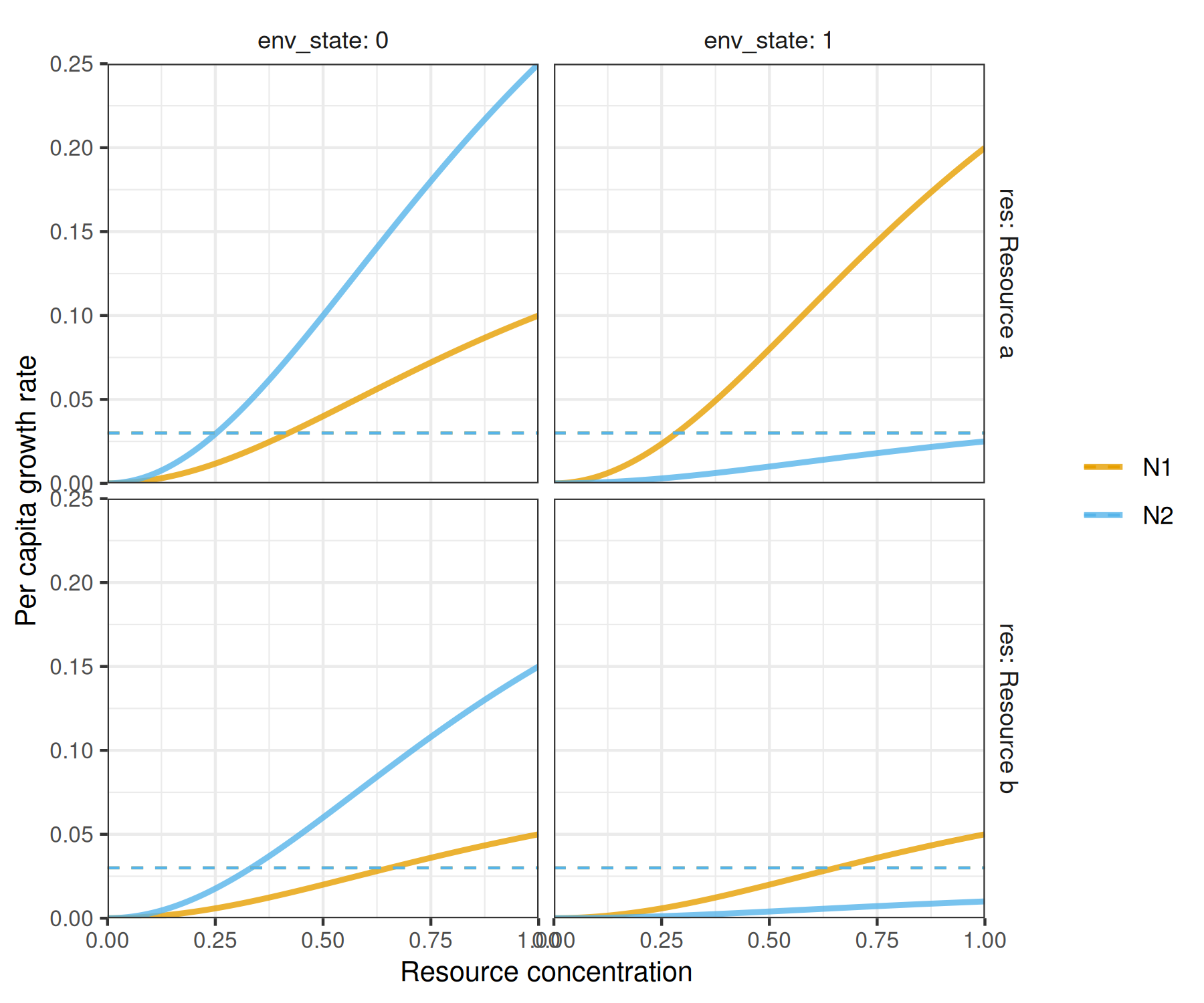 pars <- spec_rescomp()plot_funcresp() plots the functional response for easy